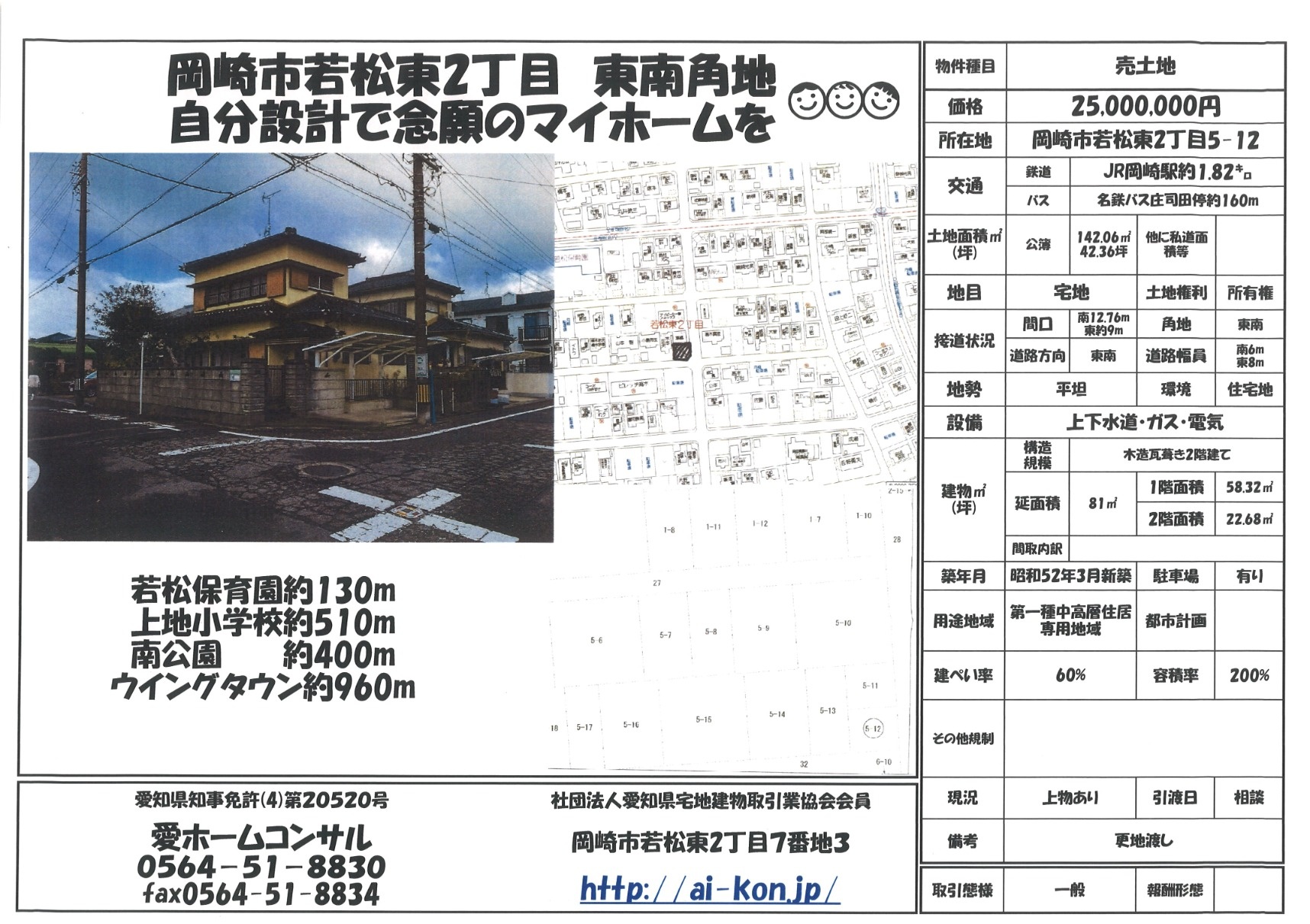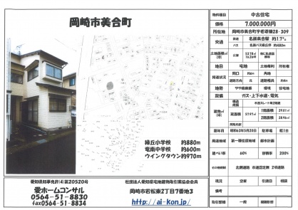 【愛ホームコンサル】 0564-51-8830(いつも出ます) 愛知県岡崎市若松東2丁目7番地3 愛知県知事免許(3)第20520号 愛知県宅地建物取引業協会会員 全国宅地建物取引業保証協会会員